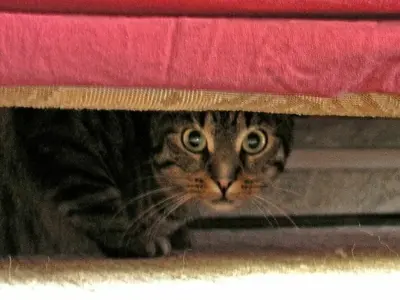 Под диваном кот сидит, Но, кого – то ждет, молчит. Вот, подходит сам Олег И визжит: -Ах, обнаглел! Обкорябал молодца. Наступила – тишина. Сам Олег – уж, на диване, А кота – уж, не видать! -Кто, кого… -Но испугал… -Мама, кот… -Куда пропал?