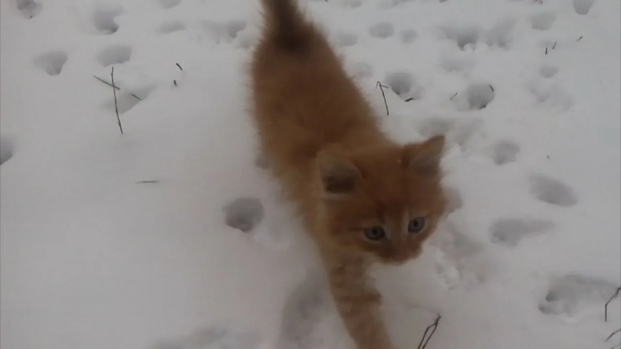 Наш котенок — просто смех, Первый раз увидел снег. Выбежал на улицу. Там снежинки кружатся. А кругом белым-бело. Много снега намело. Котик стал смешно скакать. Хочет лапкой снег поймать. Разбежался,прыг в сугроб. В снегу лапки,спинка,лоб... Прыг с сугроба на крылечко. Шерстка дыбом,хвост колечком. Испугался.вот смешной. Лапкой в дверь стучит -"домой." Тут снежинка осмелела Котику на носик села. Язычком он раз-Беда! Где снежинка?здесь вода.! Столько нового кругом! -Разберусь с этим потом... Дверь открыли.кот быстрей Да к корзиночке своей. Лег на мягкую подушку Лижет лапку,гладит ушко... Потянулся вдруг,зевнул. Замурлыкал и уснул. Пусть котенку сладко спится. Сколько можно так резвиться?