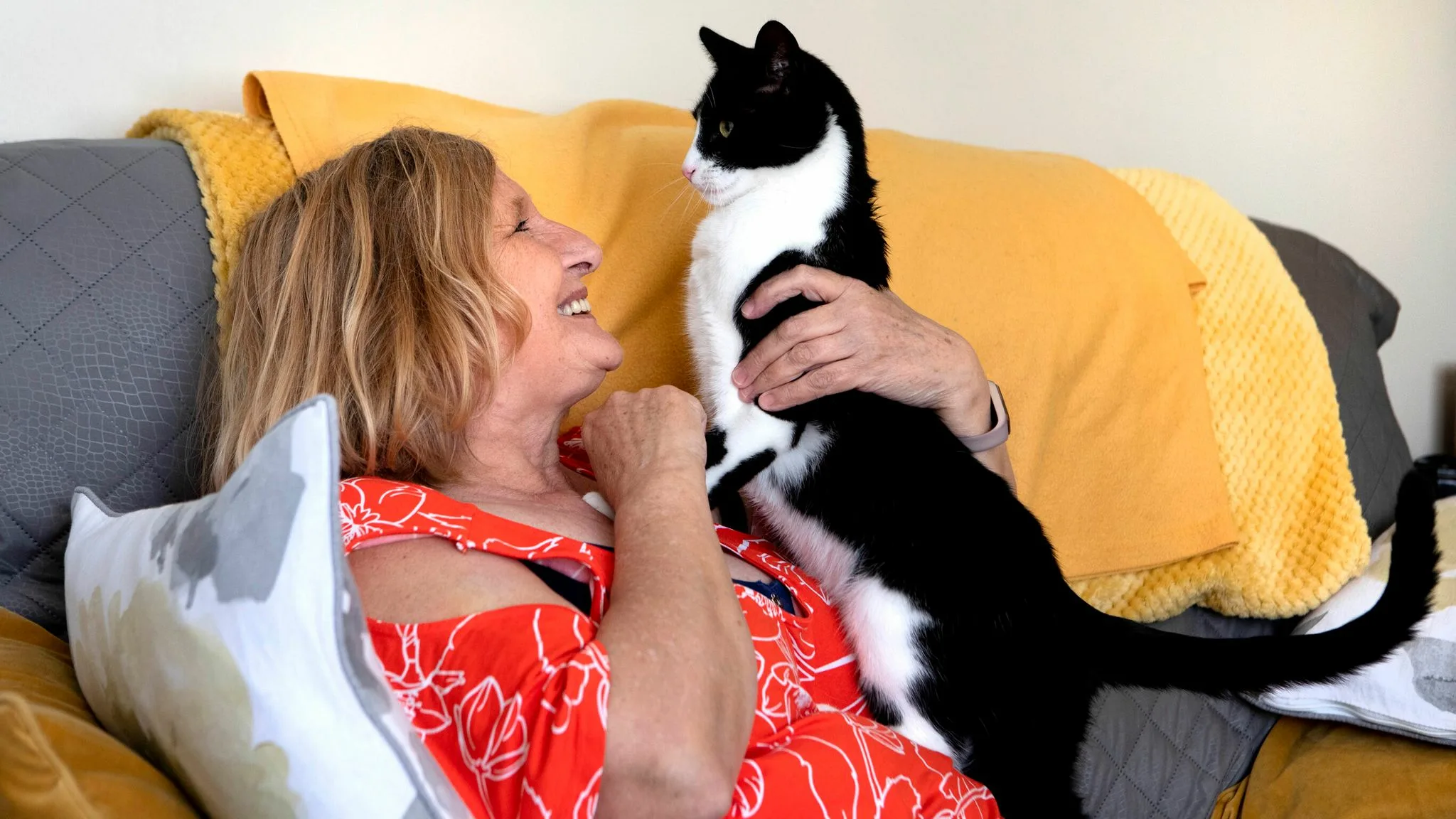 Не раз они с кошкой смотрели С балкона закаты, рассветы, И, лёжа на мягком диване, Листали страницы газеты.